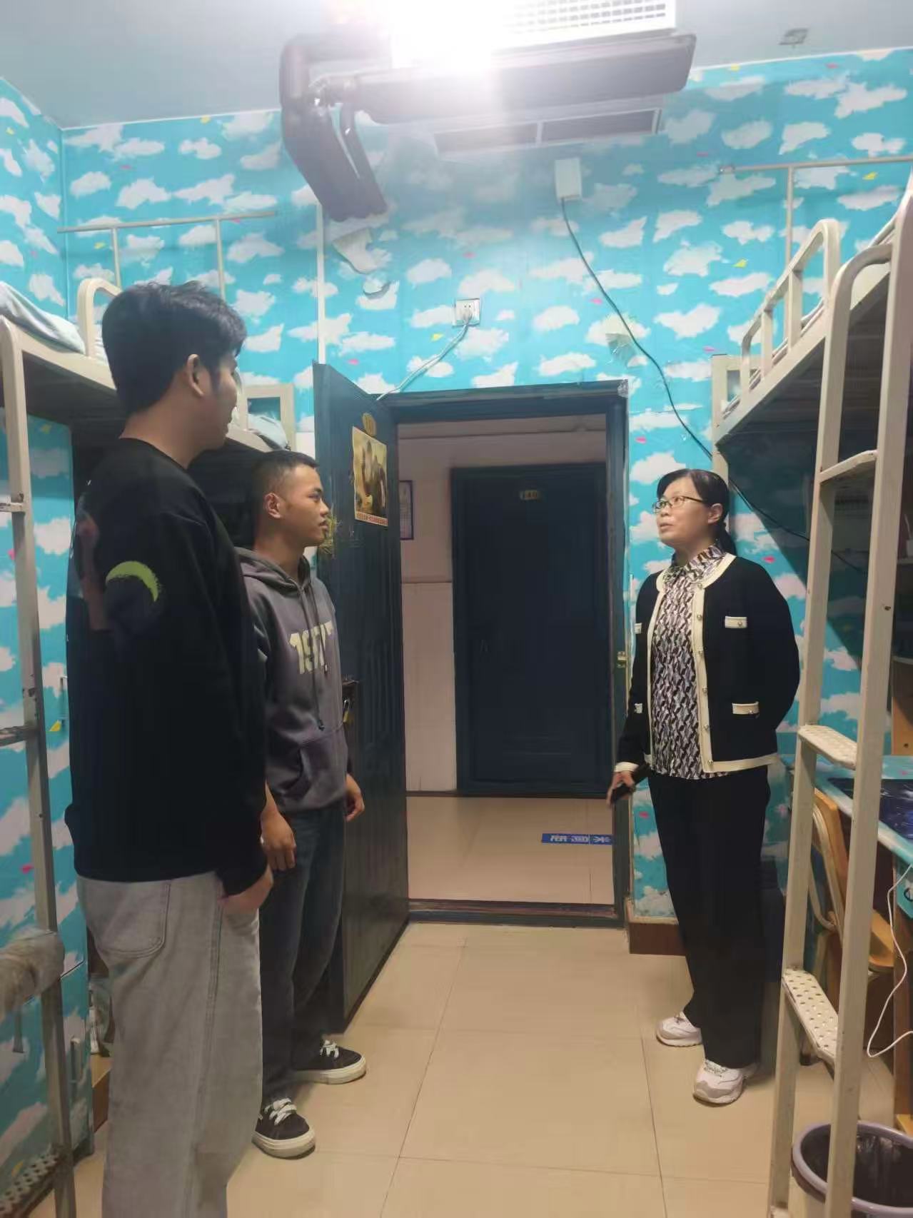 本次排查工作主要围绕违规电器使用、消防安全隐患及宿舍卫生情况等重点展开。排查过程中,王书记与辅导员们逐一走访学生寝室,与同学们进行了亲切交谈,关切询问了大家的学习进展与生活状况,并针对用电与消防安全隐患展开了重点排查,叮嘱同学们要严格遵守学校宿舍管理规定,将安全理念深植心中。同时也对宿舍卫生状况和通风情况等进行了全面检查,积极引导学生养成良好生活习惯,共同打造整洁舒适的宿舍环境。