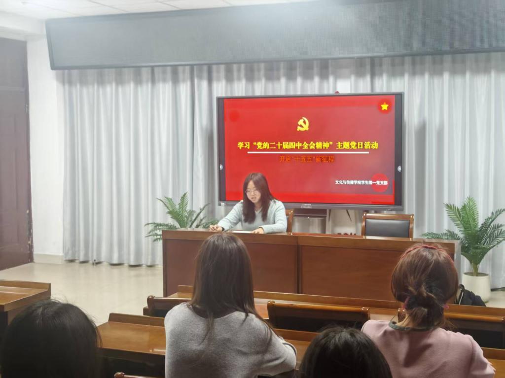 11月16日,我院学生第一党支部在知行楼238室组织开展“学习党的二十届四中全会精神”主题党日活动。活动由学生第一党支部书记王一舒组织,我院学生党员、积极分子参加了此次主题党日活动。